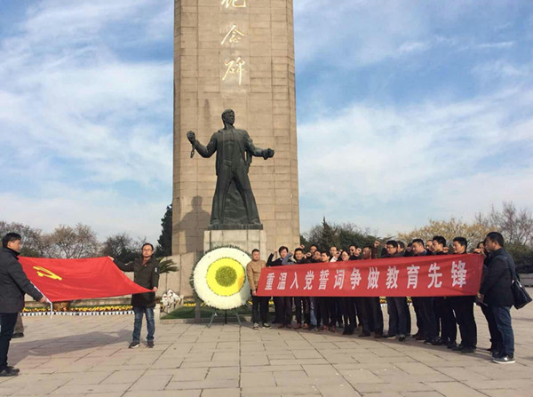 在雨花台烈士陵园,全体党员教师怀着无比崇敬的心情肃立默哀,并高举右拳,重温入党誓词,再次向党作出庄严承诺,表达了永远对党忠诚的坚强意志和坚定决心。大家庄重有序的绕烈士纪念碑一周,表达对革命先烈的无限缅怀之情。随后,大家还寻访了中山陵、中共代表团办事处旧址梅园新村等地。共同追寻历史,缅怀革命先烈,接受革命精神的洗礼。