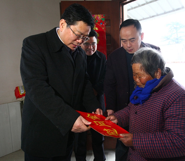 2017年1月25日市委书记魏尧来官塘村慰问贫困户,送上党和政府的关怀。