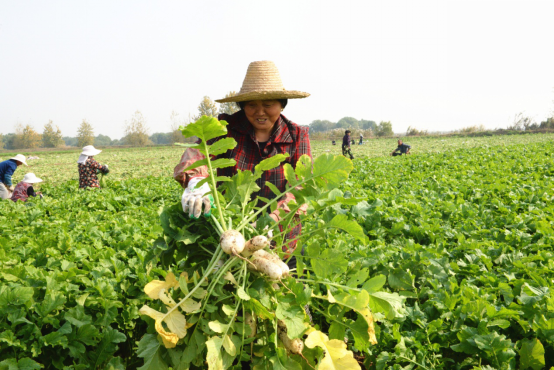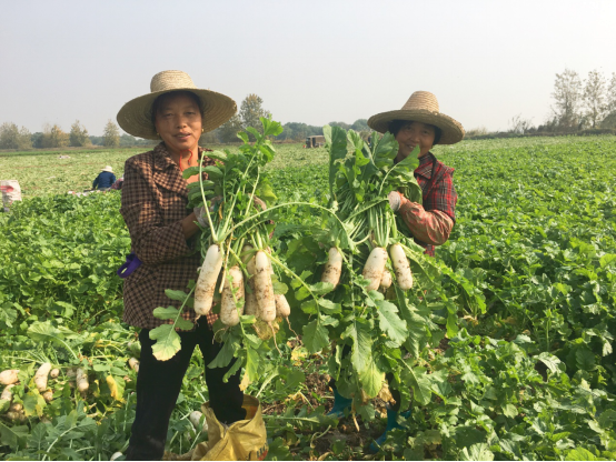 隐驾村党总支书记朱传友介绍,郑蒲港新区姥桥镇周围的土质比较适合种植萝卜,而且8月中旬至11月正处于黄豆和小麦的茬口,萝卜生长期短,收成快,可以给贫困户们增收。村里的合作社把63户贫困户吸纳进来,种植萝卜。