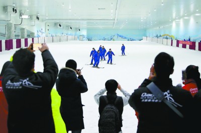 为大力发展群众冰雪运动,12月7日,省体育局主办的2017年安徽省群众冬季运动推广普及培训班,在新开馆的马鞍山市郑蒲港新区“启迪乔波”室内滑雪馆开班,共有来自全省16个市的98名学员参加培训。