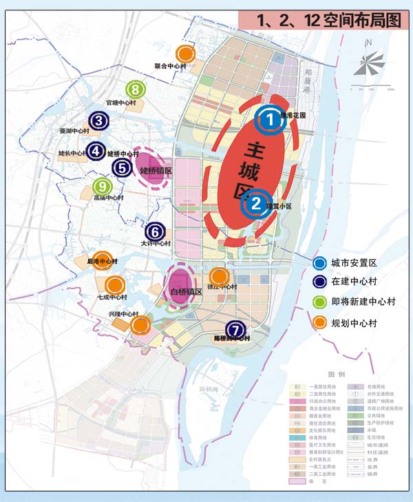坚持规划区内、外同步建设,按照城乡一体化要求,对225平方公里全域规划,编制了城乡空间分区和村庄布点、道路公交、水电气讯环卫等基础设施、文教卫体养老等公共服务设施、产业发展、就业社保、生态环境、乡村治理等规划,正在分步实施。空间布局上,构建“1个主城区---2个特色老镇区---12个中心村”的城乡结构形态,形成“新城区、新镇区、新社区、新村庄”四位一体格局,实现就地城市化、城乡一体化。建设一个主城区:按市区标准建设,成为服务和县、含山和江北产业集中区的综合新城。改造两个老镇区:按江南小镇标准改造,全面提高居民生活水平。新建十二个中心村:按城市社区标准建设,打造富有特色的农村新社区。