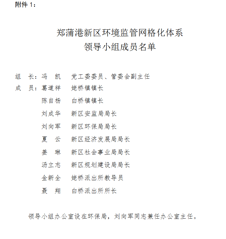 > 郑蒲港新区环境监管网格化体系领导小组成员名单公示