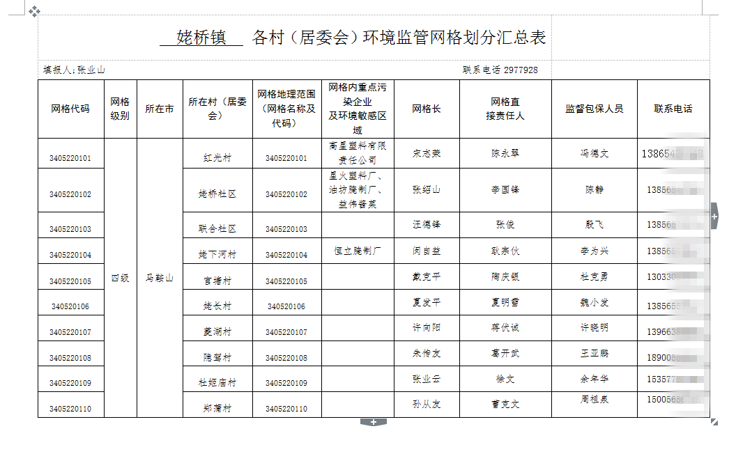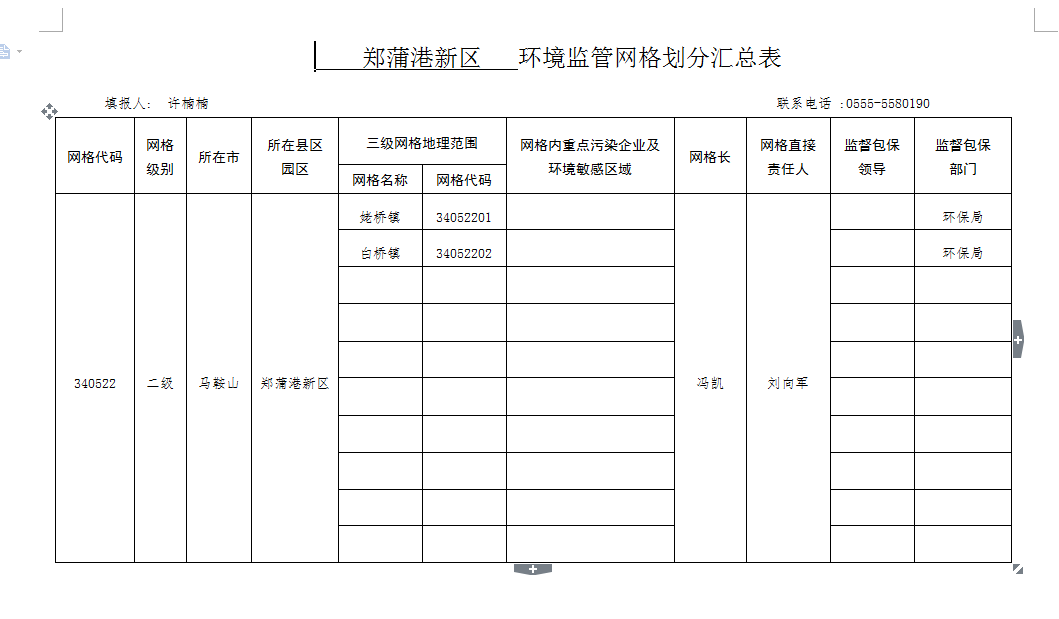 根据《关于调整完善我市环境监管网格的通知》(马环察﹝2017﹞106号)文件要求,现将调整后的郑蒲港新区环境监管网格人员名单予以公开。