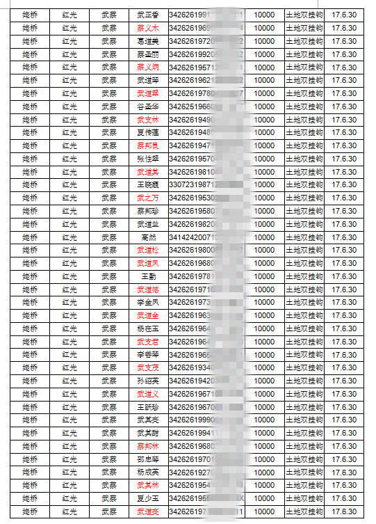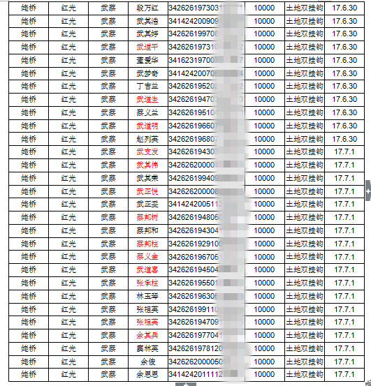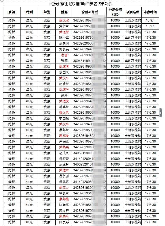 红光武蔡土地双挂钩项目安置结果公示